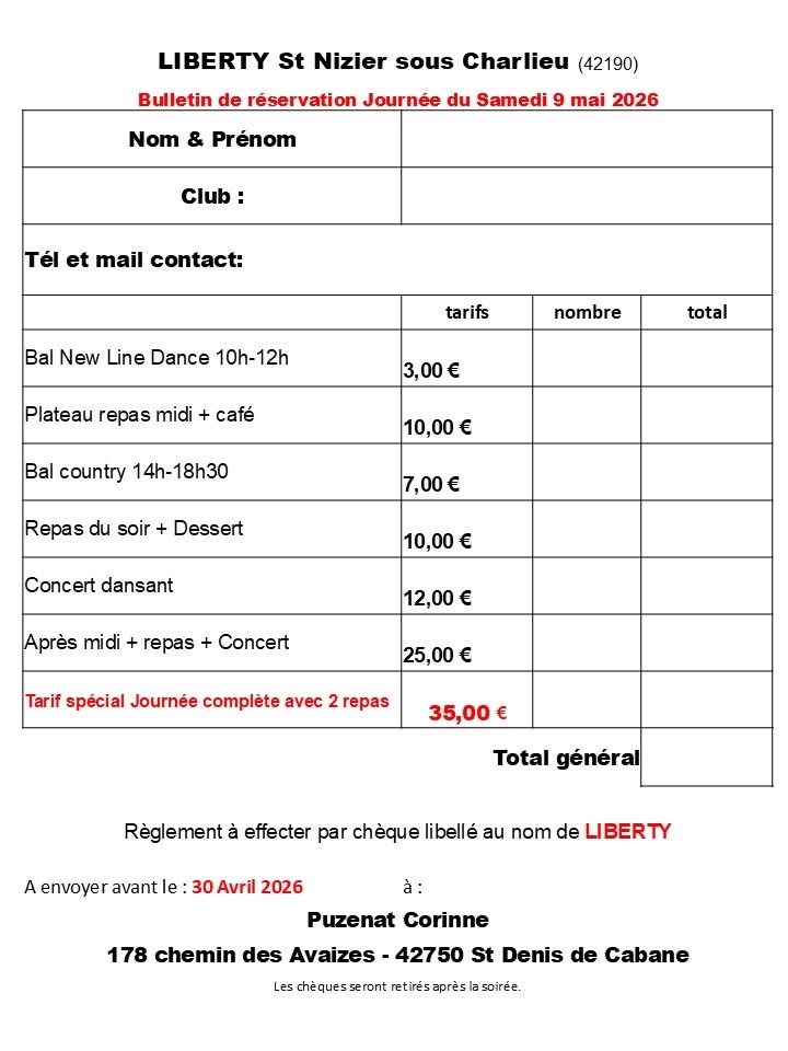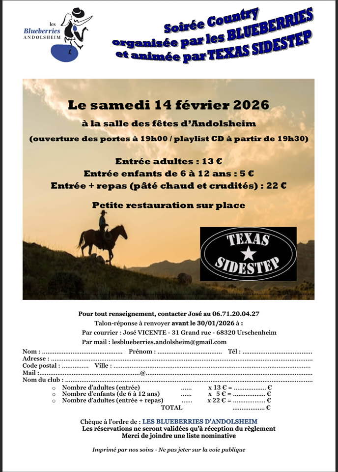Réservations sur HelloAsso : https://www.helloasso.com/associations/danse-country-challans/evenements/bal-annuel-danse-country-challans-du-07-02-2026